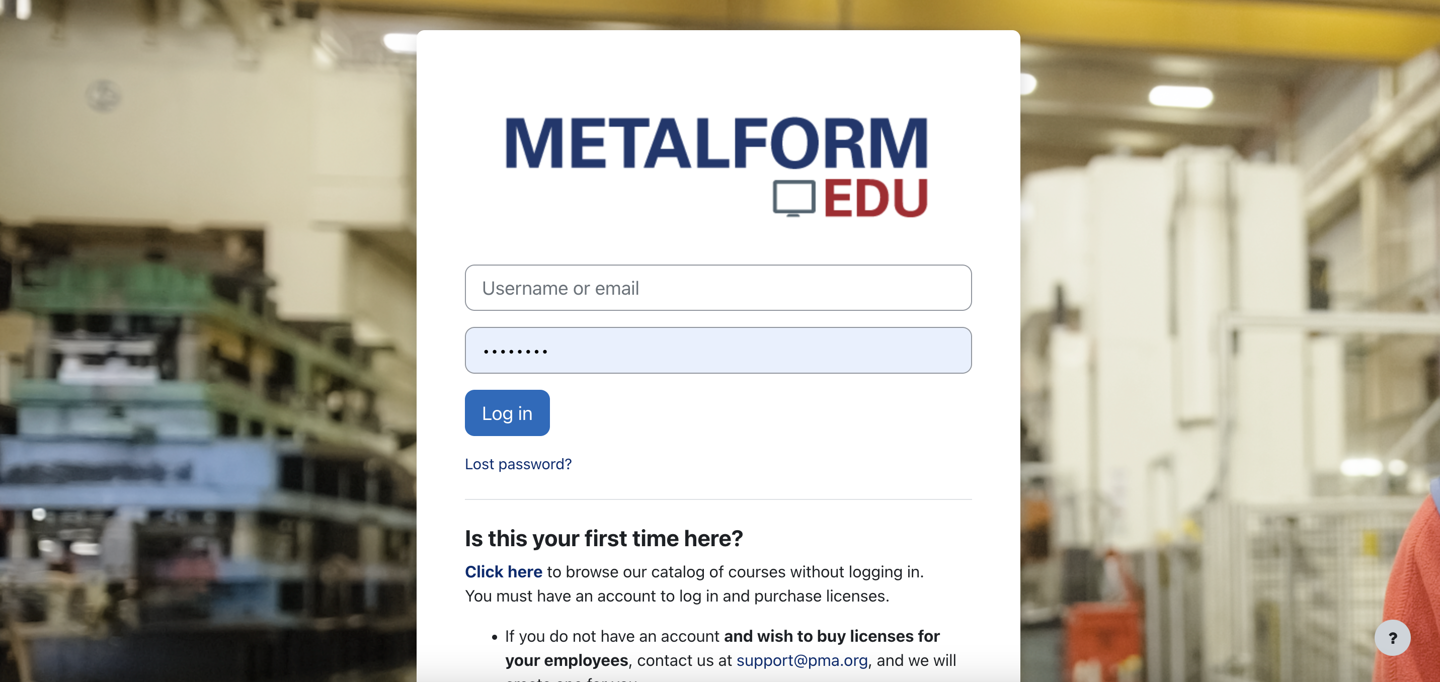 - Open your browser, and go to https://pma.metalformedu.org/login/index.php. The METALFORM EDU login page displays.