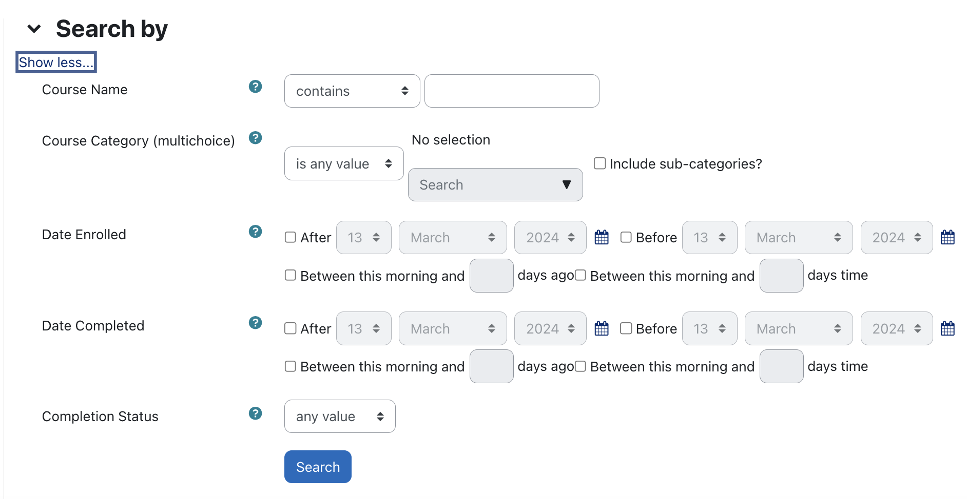 - Course Category (supports multi-select - i.e. multiple categories)